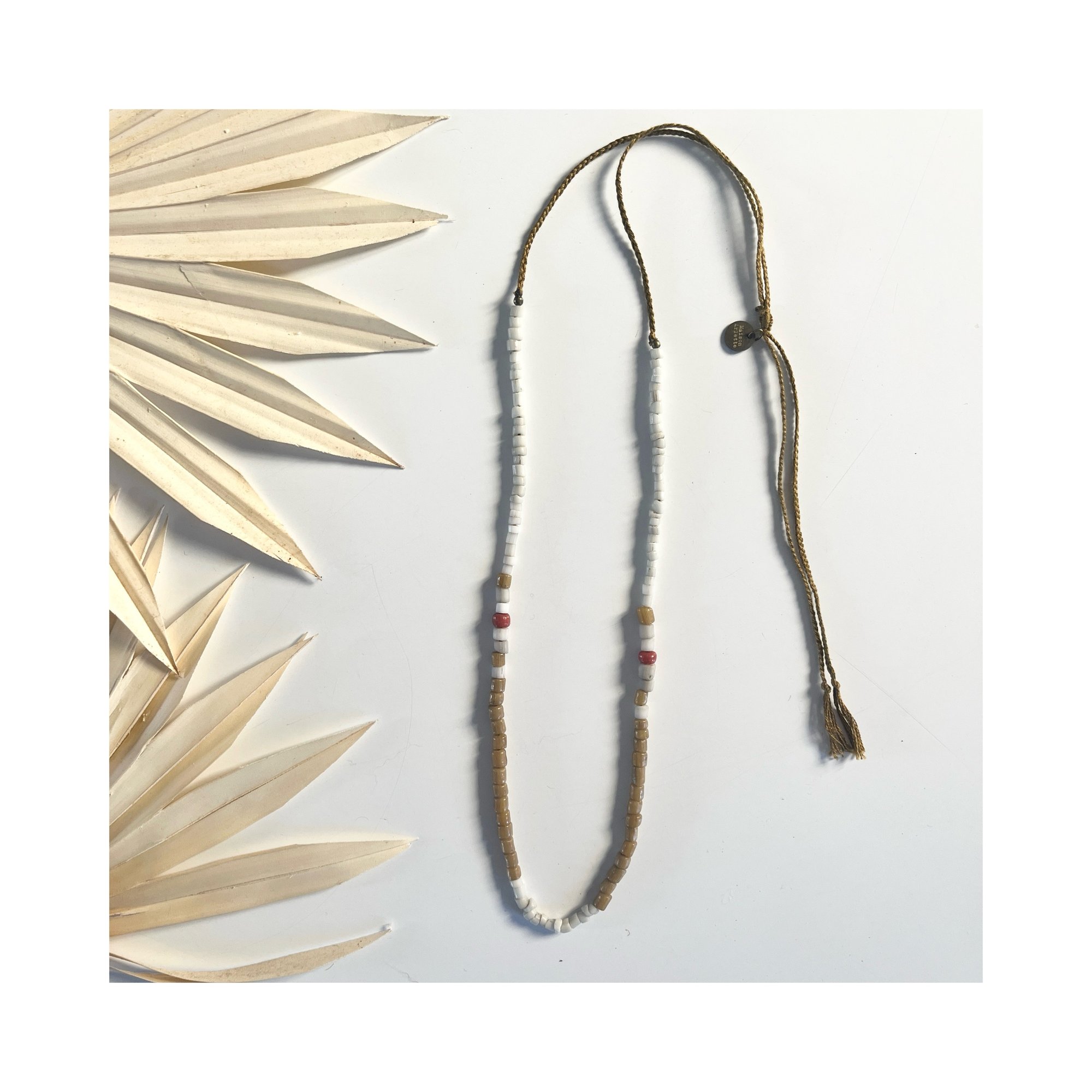 Conçu sur une fine tresse en coton, chaque pièce est ornée de perles irrégulières en pierre, sélectionnées pour leurs teintes naturelles inspirées de l’île de Bali.